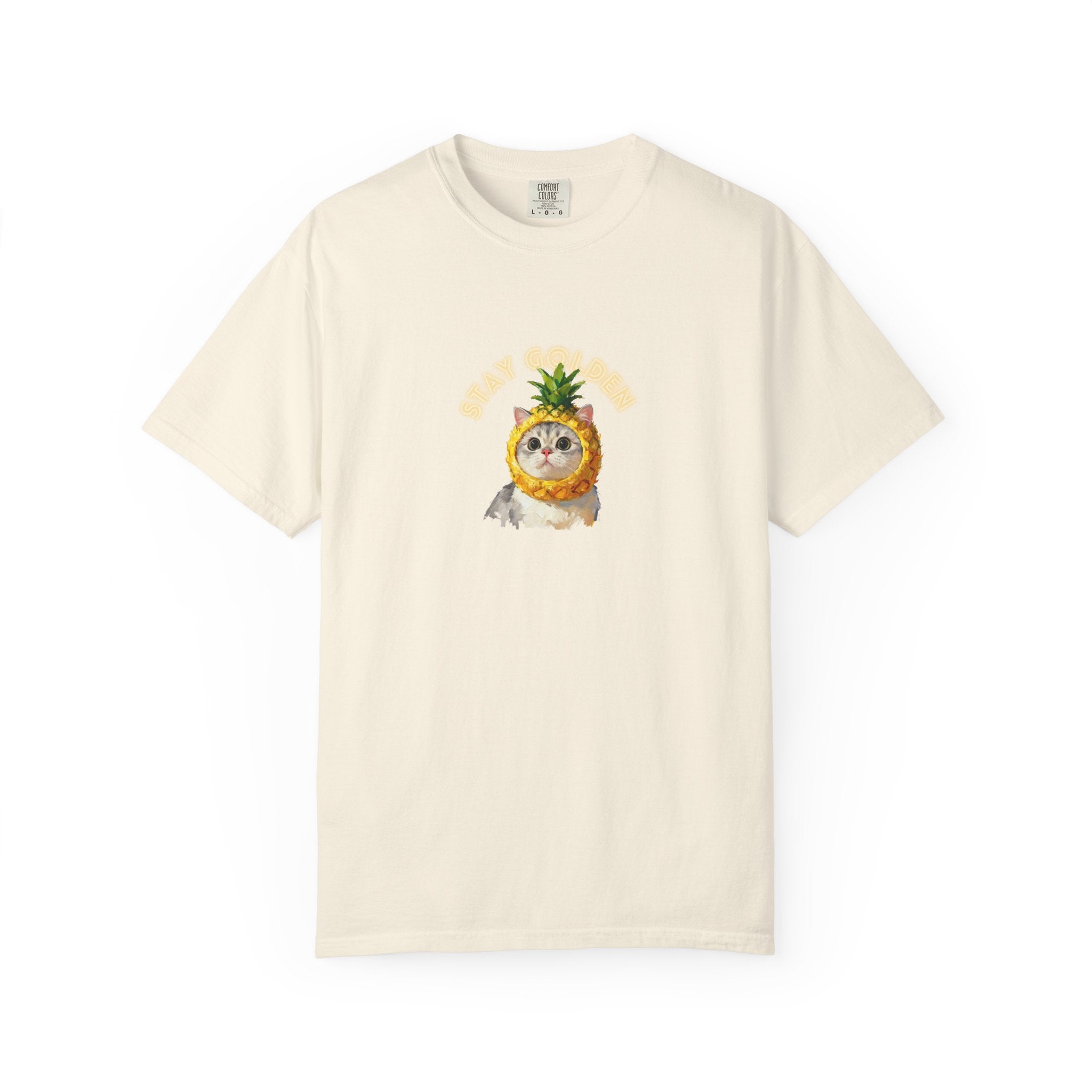 Stay golden—with a little extra fruit energy. This custom pet T-shirt features your pet’s photo transformed into a playful pineapple portrait, topped with glowing “STAY GOLDEN” lettering for a clean, high-contrast look. Minimal placement, maximum personality—cute, cool, and impossible to ignore.