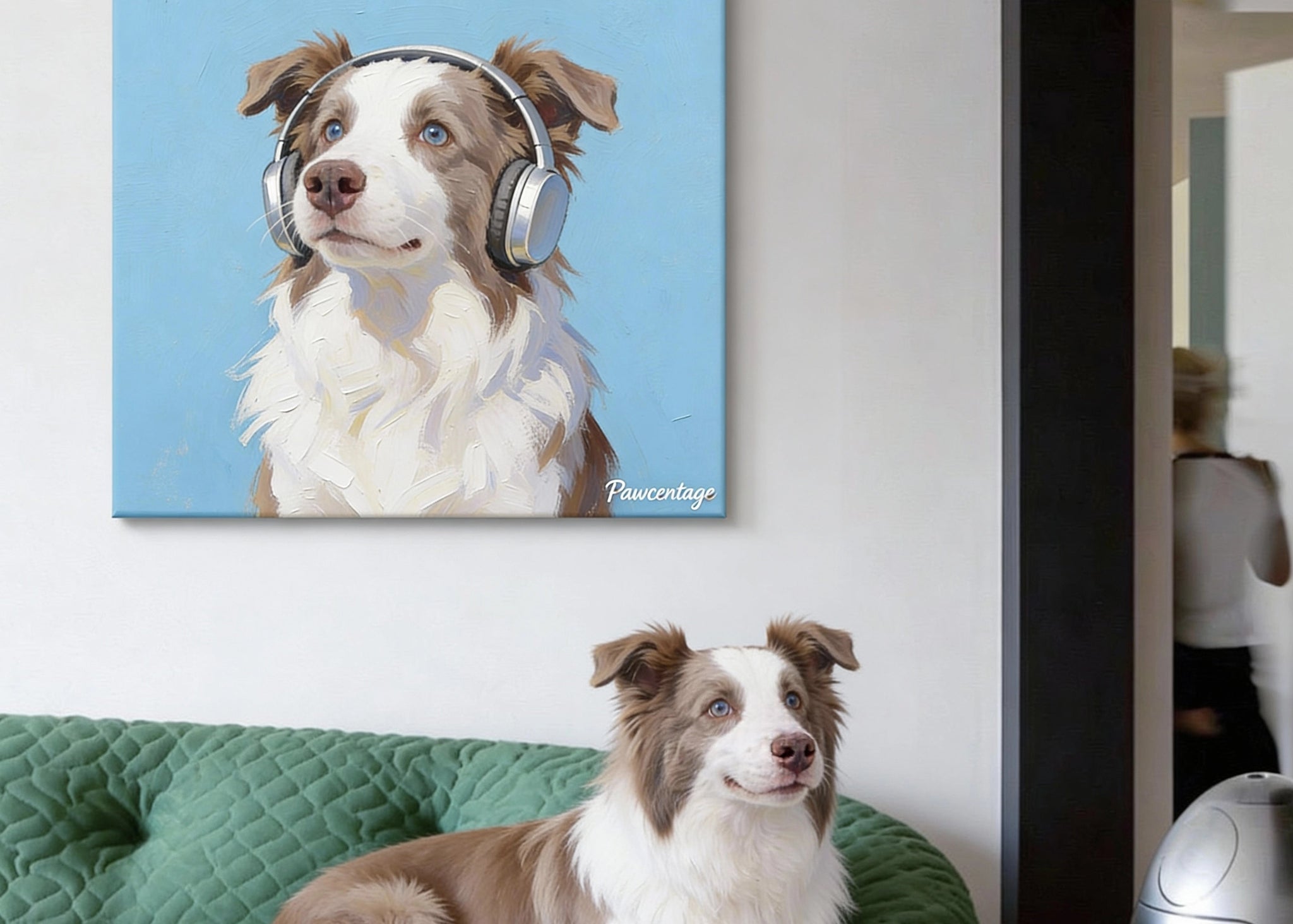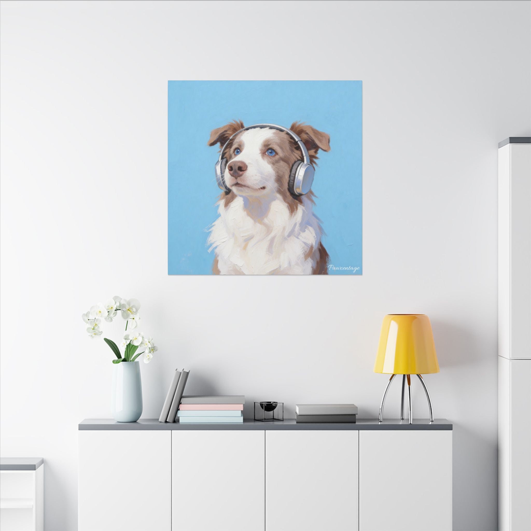 Turn your pet into gallery-worthy art. This custom pet canvas transforms your favorite photo into a modern painterly portrait—soft brush textures, clean color blocking, and a playful concept (yes, the headphones can stay). Printed on premium canvas and stretched for a crisp, elevated look that instantly upgrades any wall.